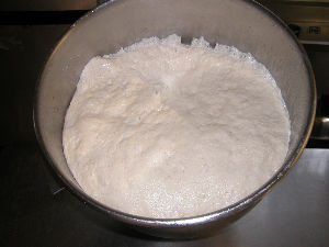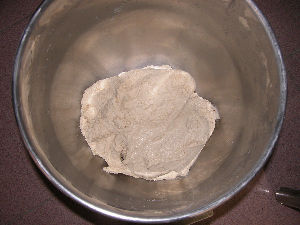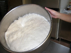1.先將種麵的材料放入缸中,麵團攪打至筋性約60%後,放置室溫5分鐘後,就放冰箱冷藏發酵備用約18h.(10/9)