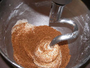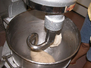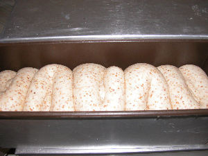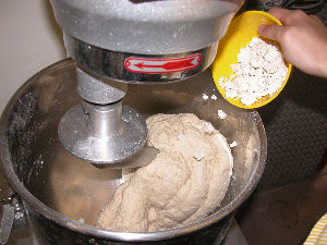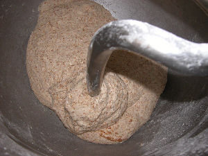 3.等麵團攪打至完成階段時,才可加入胚芽用慢速拌勻,完成後不用基礎發酵,只要鬆弛約10分鐘,就可以分割了.