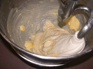 2.主麵團一樣攪打至筋性約60%時加入宵種麵團(切小塊),等筋性達90%時加入奶油.