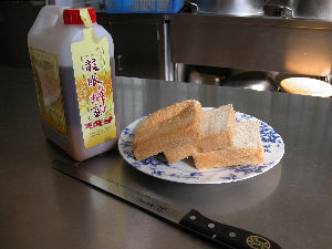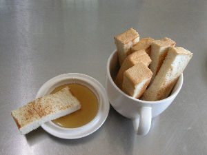 A:準備材料1.龐多米數片 2.純蜂蜜 B:龐多米切片,厚薄隨意.用厚的平底鍋不用油用中小火, 先將龐多米稍微乾煎至兩面呈現金黃色即可起鍋. C:切成條狀,放置碗中,蜂蜜倒在小碟子裝好. 好吃又營養的下午茶小點心完成了, 因為蜂蜜濃濃的香甜味能掩蓋失敗龐多米的怪味道